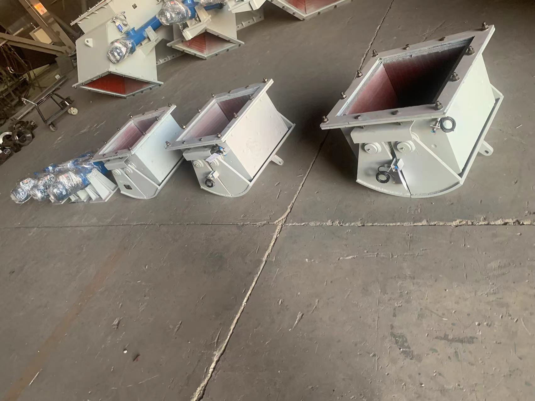 結(jié)構(gòu)簡(jiǎn)單、使用方便、可實(shí)現(xiàn)遠(yuǎn)距離控制。鄂式閘門是用來對(duì)比重小于2.5t/m3的物料進(jìn)行卸料的裝置,腭式閥的型號(hào)分為標(biāo)準(zhǔn)與非標(biāo)兩種,其使用效果在相應(yīng)的工況下是一樣的,只是在非標(biāo)的腭式閥中,因其環(huán)境需要,對(duì)腭式閥進(jìn)行過一些改進(jìn)設(shè)計(jì)與制作。