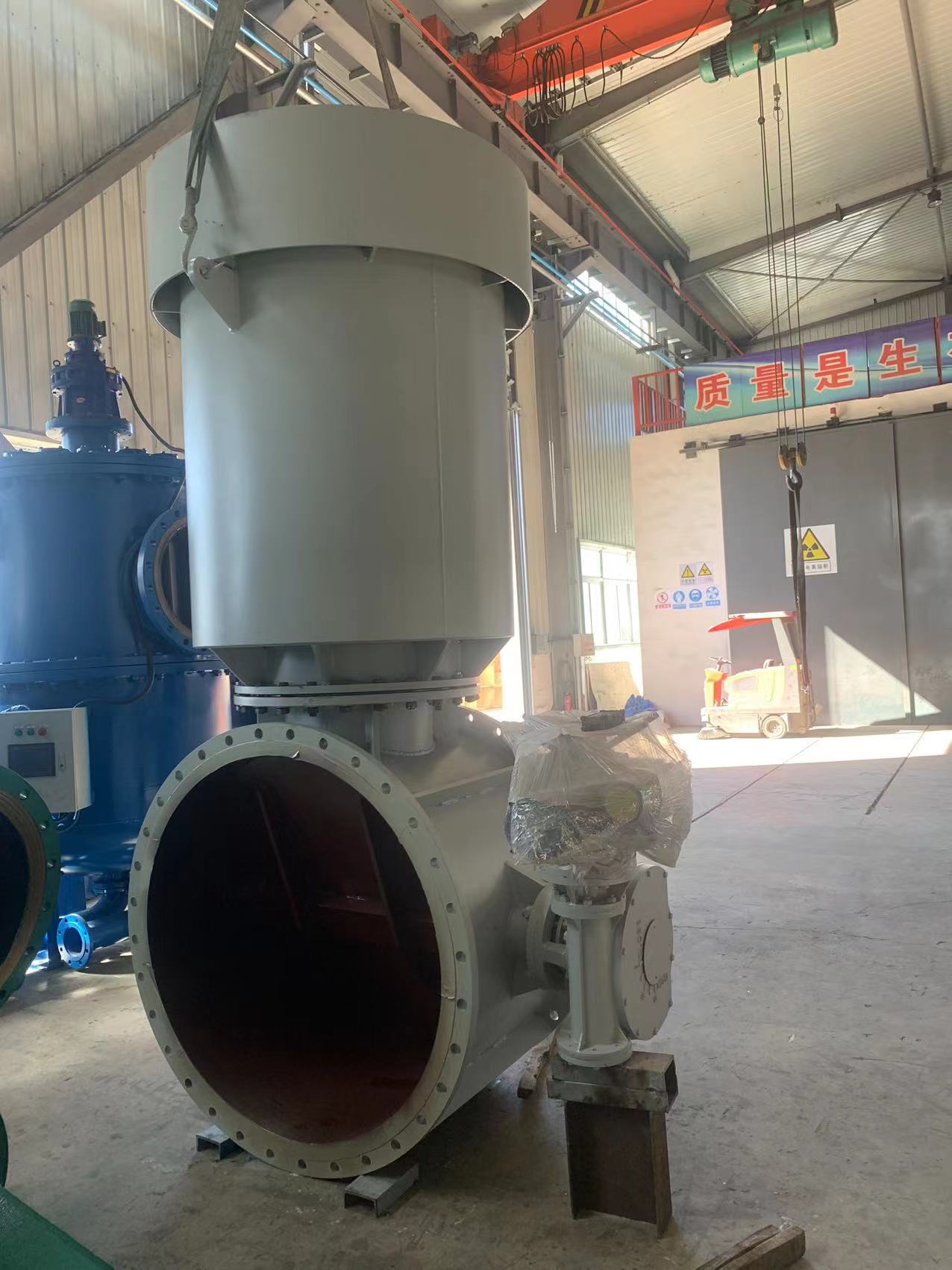 本閥由閥體、蝶板、連桿、消聲器、排風(fēng)筒等部件組成。用電動(dòng)裝置轉(zhuǎn)動(dòng)蝶板達(dá)到閥門啟閉,來實(shí)現(xiàn)不停止鼓風(fēng)機(jī)的情況下減少或完全停止向高爐送風(fēng),將多余的氣體管排到大氣中。